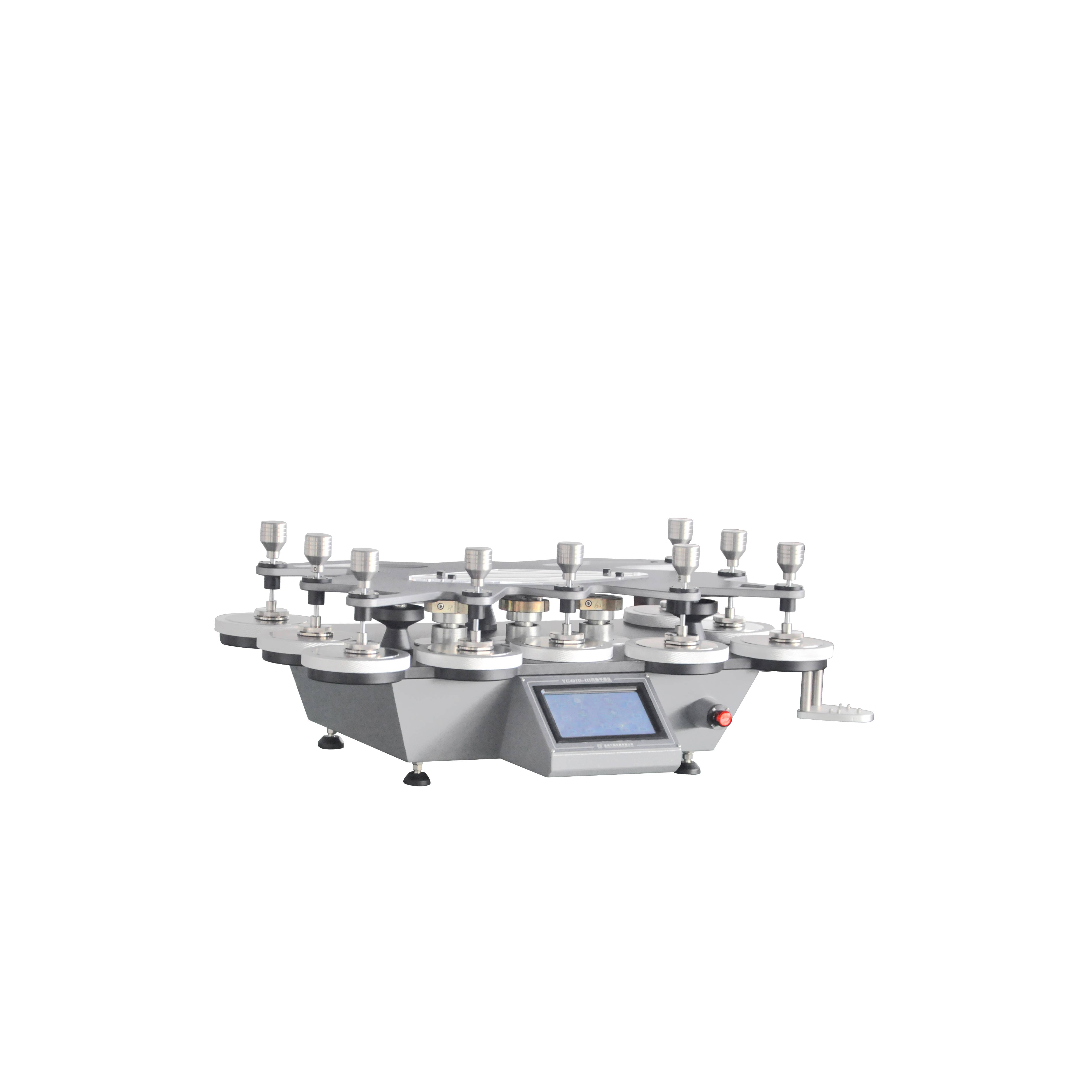 72 YG401F織物平磨儀(九工位) GB/T4802.2-2008,GB/T13775,GB/T21196.1,GB/T21196.2,GB/T21196.3,GB/T21196.4;FZ/T20020;ISO12945.2、12947;ASTM D 4966、4970、IWS TM112,可以增加球盤(pán)法測(cè)試功能(選配)等標(biāo)準(zhǔn)。